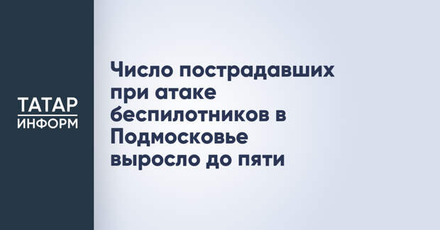 Число пострадавших при атаке беспилотников в Подмосковье выросло до пяти, пишет РИА Новости со ссылкой на экстренные службы.