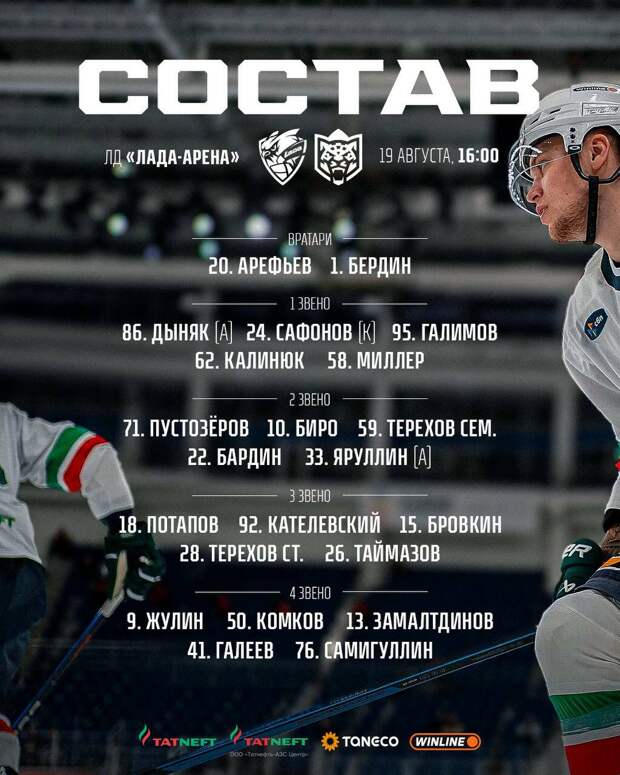 «Ак Барс» представил состав на контрольный матч с тольяттинской «Ладой».