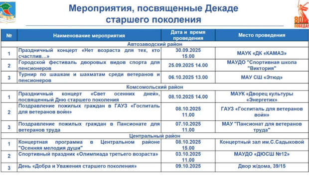 9 октября в Челнах отметят «День добра и уважения старшего поколения», а 10 октября завершится акция «Забота».