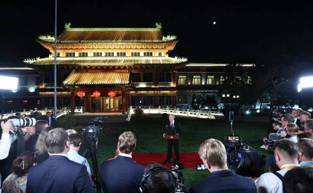 Владимир Путин встретился с журналистами на лужайке перед резиденцией российской делегации в Пекине