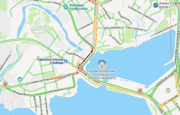 Серьезная пробка возникла из-за ДТП на Кировской дамбе в сторону центра Казани. Об этом свидетельствуют данные сервиса «Яндекс.Карты».