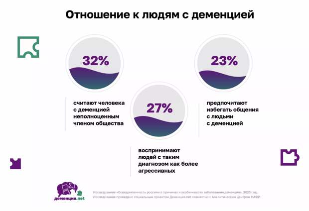 Позитивно, по ее мнению, что все больше россиян высказывают готовность поддерживать людей с деменцией. «Однако для реального изменения общественного отношения необходимо сочетать просветительские инициативы с практическими инструментами поддержки семей, где есть человек с таким диагнозом», – уверена аналитик.