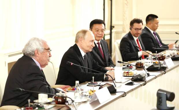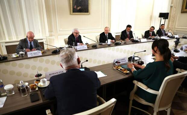 Накануне пленарки Владимир Путин встретился с представителями 14 ведущих мировых информагентств, среди которых были журналисты из недружественных стран