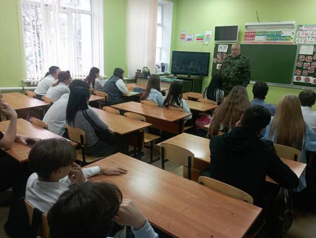 О своей жизни, службе и работе клуба «Беркут» старшеклассникам рассказал подполковник в отставке, ветеран боевых действий в Афганистане Владимир Золотухин из Лениногорска.