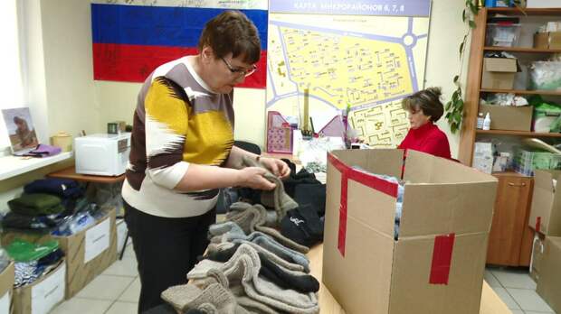 С первых дней спецоперации в пункте сбора гуманитарной помощи группы «Добрые сердца» кипит работа. Носки, жилеты, шарфы и шапки для бойцов сюда приносят со всего города. Несмотря на тысячи уже собранных пар, нужда в теплых вещах не снижается – особенно с наступлением холодов.