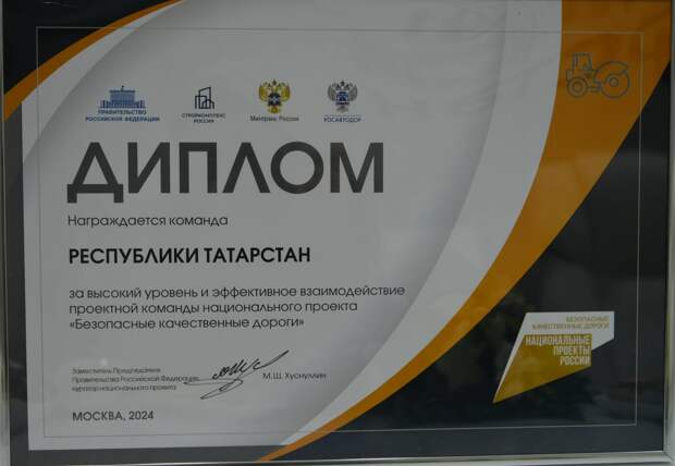 Сегодня в Москве в рамках «Транспортной недели» наградили регионы, лидирующие по реализации национального проекта «Безопасные качественные дороги» в текущем, 2024 году. Республика Татарстан получила диплом «За высокий уровень и эффективное взаимодействие проектной команды», сообщает пресс-служба Миндортранса РТ.