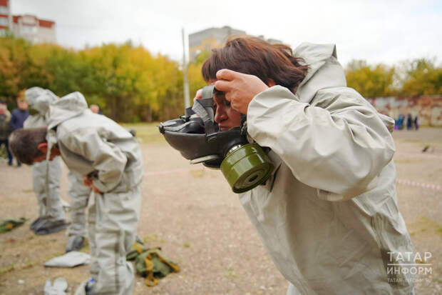 Практическая часть включает в себя надевание на скорость защитного костюма