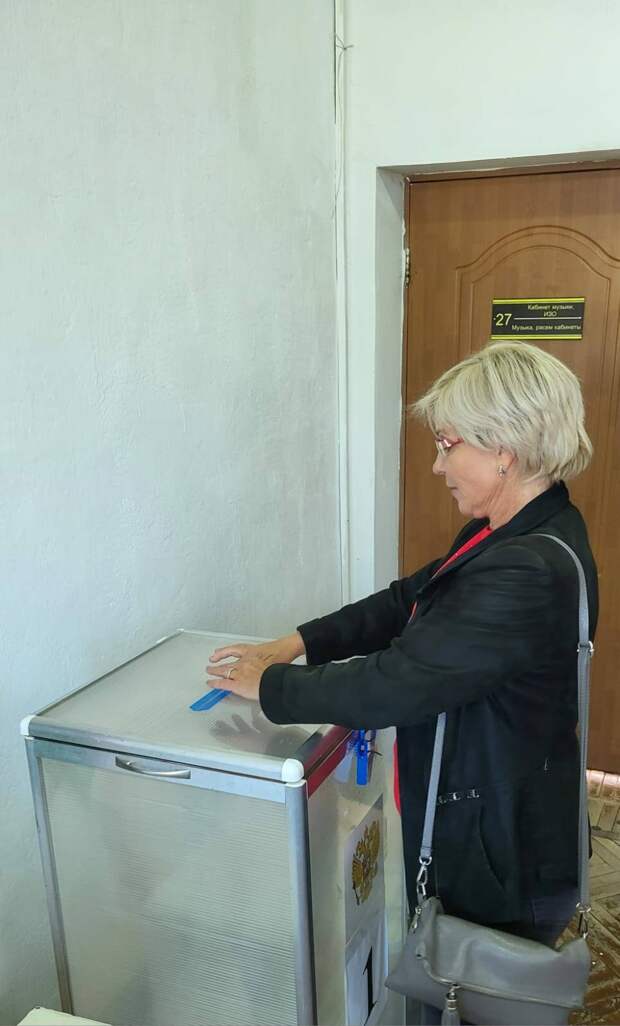 Председатель Комитета по социальной политике Светлана Захарова проголосовала в своей родной школе №1 города Набережные Челны.
