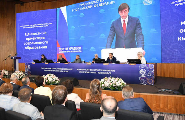 Совещание традиционно открылось видеообращением министра просвещения России Сергея Кравцова к участникам августовских педагогических совещаний. Он начал со слов благодарности учителям за их труд.