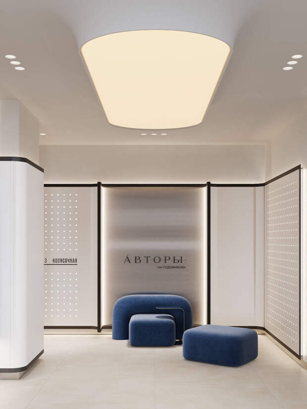 Дизайнеры из архитектурной студии BLOK STUDIO создали светлую атмосферу, избавившись от темных уголков, благодаря пастельному цвету стен, который отражает солнечные лучи и создает ощущение простора. Кроме того, стоит отметить функциональность внутренних пространств: это колясочные с собственным входом, зоны ожидания, санузлы с лапомойками для питомцев и тихие лифты с паркинга до квартир. А добраться до своего жилья поможет простая и стильная навигация.