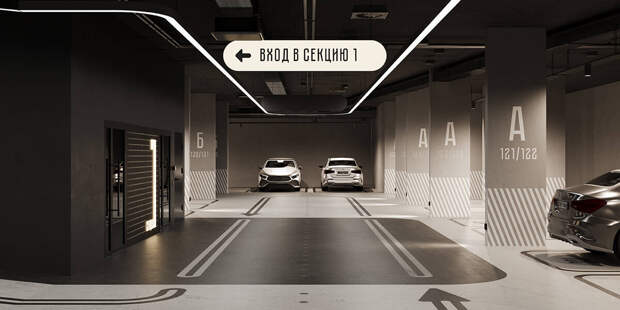 Из квартиры можно спуститься в дизайнерский подземный паркинг на 131 машино-место, что довольно необычно для проектов комфорт-класса. «Дизайнерский паркинг уже становится традицией компании "Авторы". Важно, чтобы эстетика проекта проявлялась в каждом элементе дома», — подчеркивает Фаттахова. Это выражается в характерном для компании «Авторы» минималистичном черно-белом стиле.