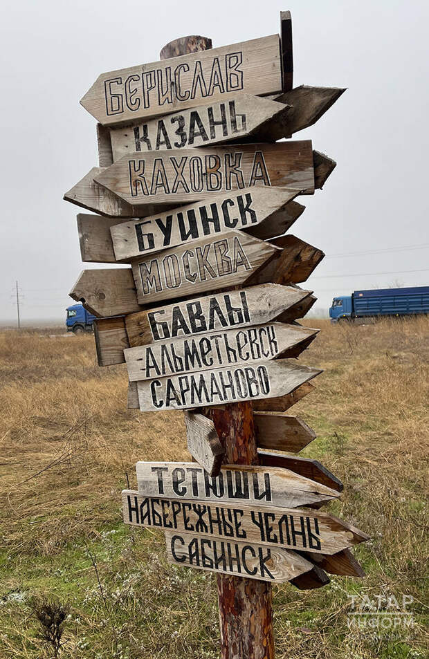 Чтобы о доме и родном Татарстане напоминало как можно больше, бойцы повесили указатель, на котором написали названия городов республики и расстояние до них. Сделали и указатели на татарском языке.