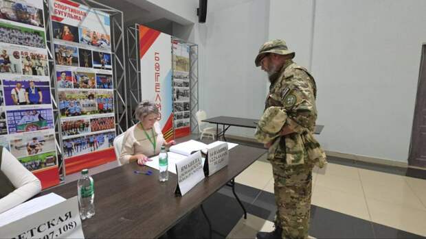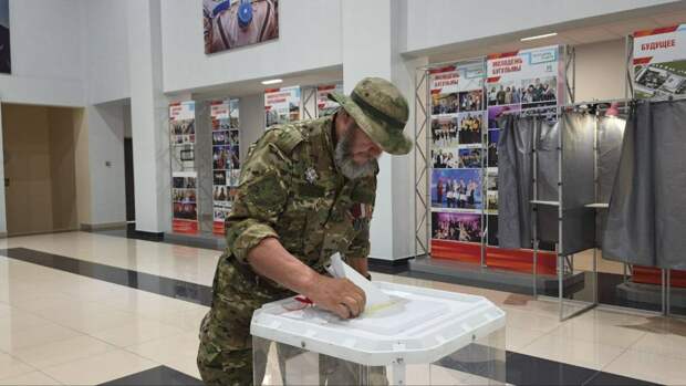 Одним из первых на участке № 1130 во Дворце молодежи свой гражданский долг исполнил участник специальной военной операции Равиль Хамидуллин.