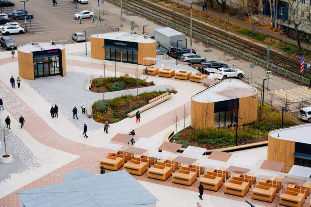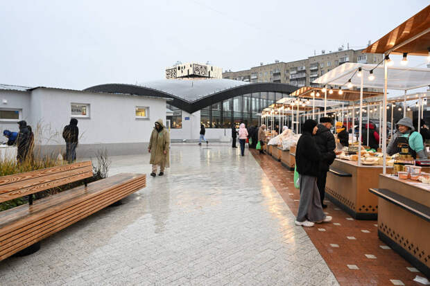Территория вокруг рынка тоже преобразилась. Помимо отапливаемых павильонов в едином стиле и ярмарочных рядов ее заняли амфитеатр для лекций, концертов и шахматных турниров, общественная теплица и парковка. Также благоустроена территория вокруг рынка, где установили скамейки, высадили деревья и цветы. Благодаря всему этому на Московском рынке затеплилась событийная жизнь.