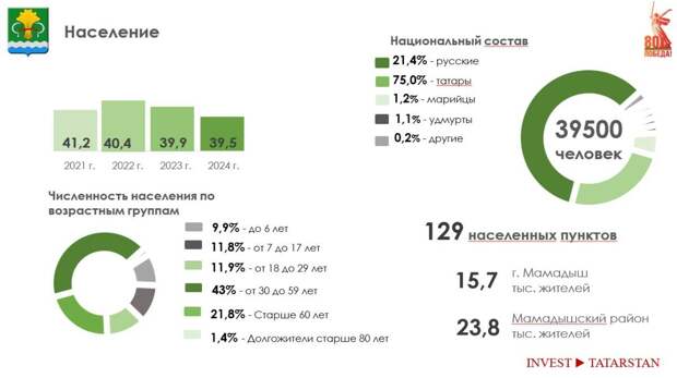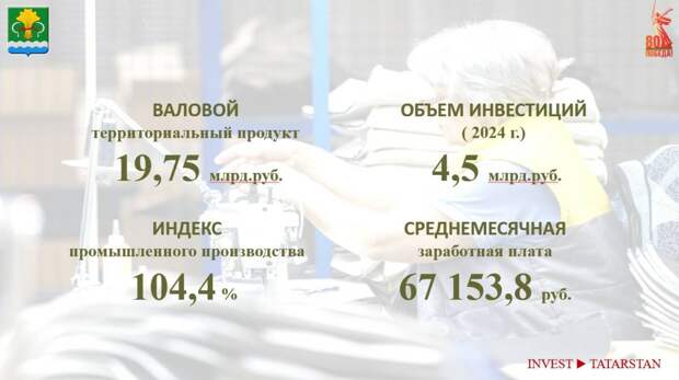 О развитии экономики Мамадышского района в цифрах: объем валового территориального продукта (ВТП) за 2024 год составил 19,7 млрд рублей (+12% к 2023 году). Индекс промышленного производства составил 104,4%.