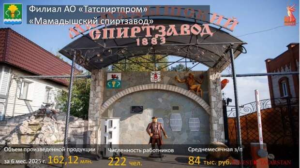 Одно из старейших предприятий города, основанное в 1883 году – это Мамадышский спиртзавод, филиал «Татспиртпрома». В прошлом году там запустили новый цех вискового дистиллята, в проект вложили порядка 150 млн рублей инвестиций.