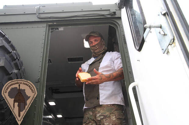 Рядом стоит такой же «КАМАЗ», но внутри него хлебопекарня. В лотках лежит ароматный мягкий белый хлеб. Пекари рассказывают, что могут испечь и пирог в подарок сослуживцу на день рождения. Больше всего, по словам повара, в его исполнении бойцы Африканского корпуса любят пирог с мясом и сыром.