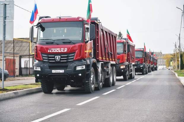 Символический старт движению по обновленной дороге дали мэр и начальник ГИБДД. По традиции, по новому асфальту проехала колонна самосвалов.