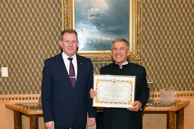 Кроме того, Аркадий Гостев вручил Рустаму Минниханову почетную грамоту Федеральной службы исполнения наказаний за заслуги в оказании помощи при выполнении задач, возложенных на уголовно-исполнительную систему России. В беседе принял участие начальник Управления ФСИН России по РТ Эдуард Хиалеев.