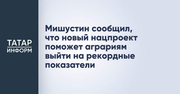 Новый национальный проект по технологическому обеспечению продовольственной безопасности поможет российским аграриям достигать новых рекордов, заявил премьер-министр России Михаил Мишустин. Его слова передает РИА Новости.