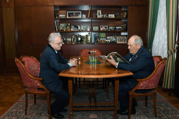 Михаил Пиотровский в ответ подарил Минтимеру Шаймиеву свою новую книгу «Эрмитаж земной и небесный» и каталог выставки «Юсуповы. Роскошь сквозь века».