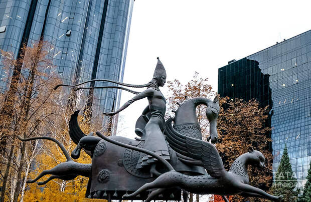 Композиция «Тулпар» на месте бывшего парадного входа старого ипподрома