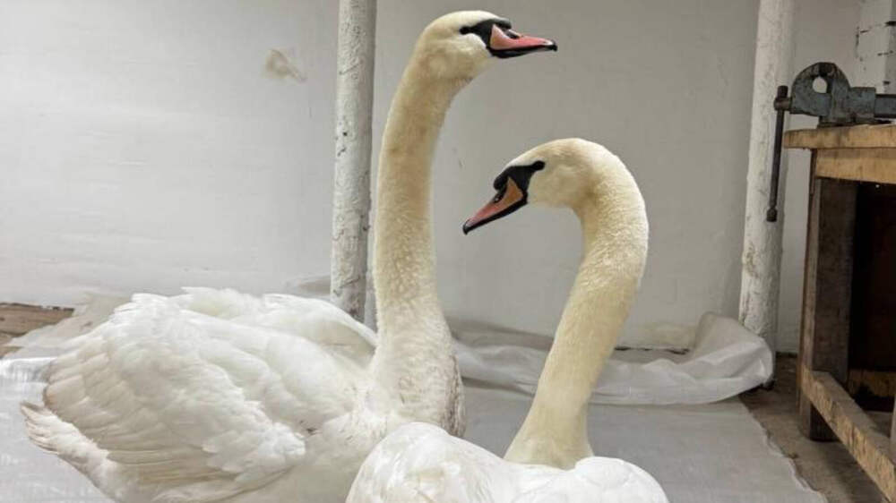 Двух краснокнижных лебедей, не улетевших на зимовку, перевезли на экоферму в Альметьевске